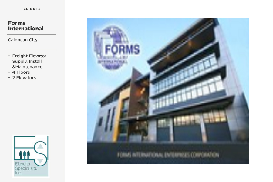 Elevator Specialista, Inc. (ESI) was established last December 16, 2008 by group of professionals spearheaded by one of the highly respected real estate developers in the country in providing quality and affordable homes, Engr. Philip L. Go, Chairman of Builders 2000.
